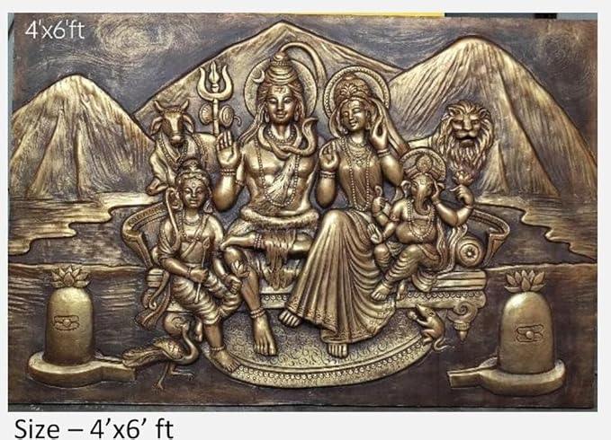 NATURE SQUARE Lord Shiva & Parvati 3D Elevation fiber Relief Mural Wall Art decor,Actual 4x6 Feet